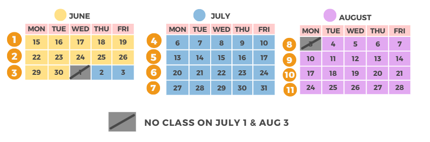 Programs and Camps Available between Jun 15-Aug 28 from Monday to Friday: